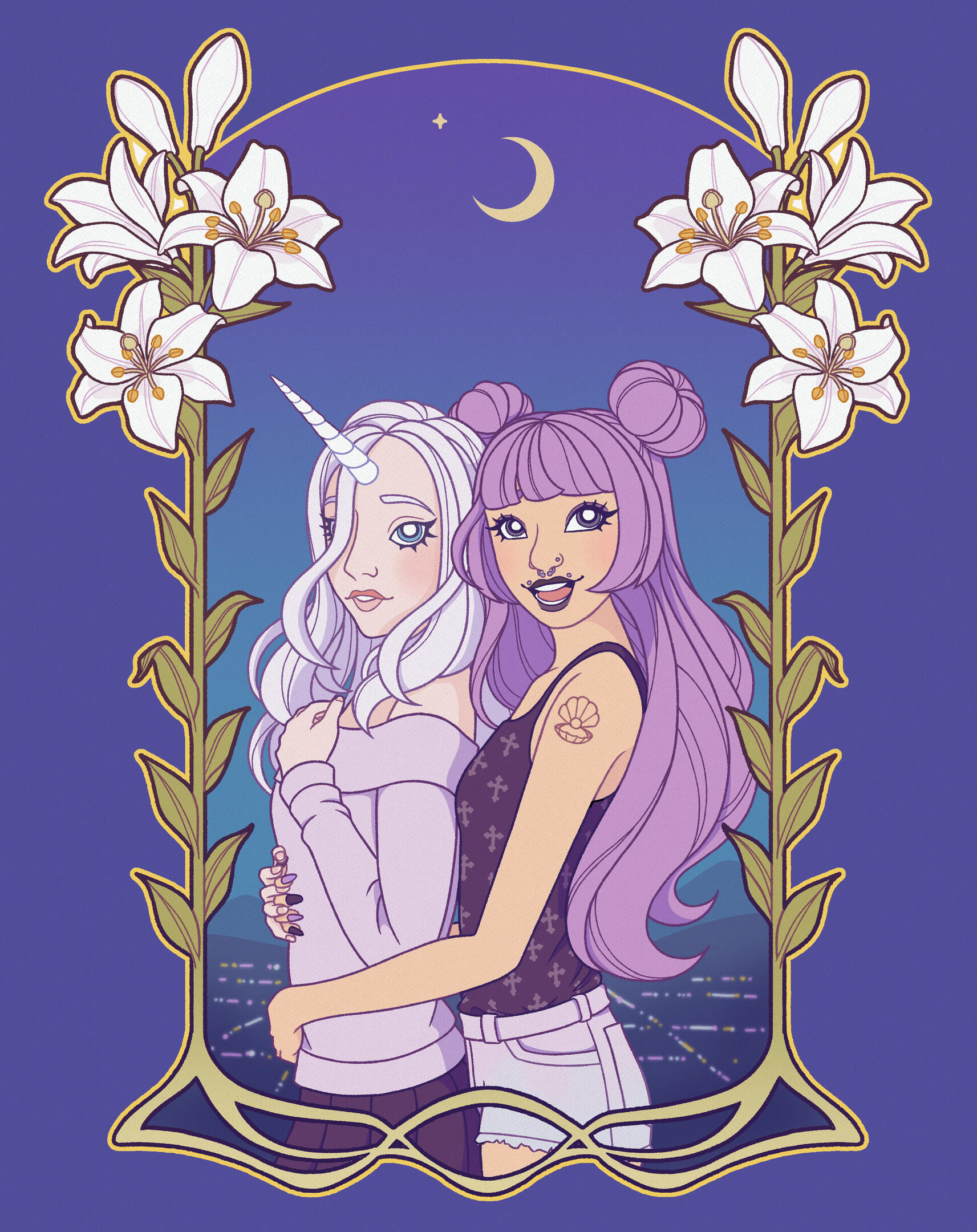 Fionna McCool likes drawing fashionable girls and flowers with a surrealist twist! Their art is a mix of Art Nouveau elegance and Harajuku edge, with additional inspirations being 60’s-70’s design and the aesthetics of K-Pop girl groups.